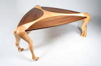 „Piese sculptate în forme anatomice feminine şi provocatoare sunt ultima modă în materie de amenajări interioare extravagante.” Aşa începea un articol din suplimentul de case din Evenimentul Zilei de azi. Amenajări interioare extravagante? Bullshit! E kitch pe faţă şi la greu. Oribilitatea, pardon, masa din imagine se potriveşte de minune cu ţurţurii din ipsos plantaţi pe tavan şi cu mileul de pe plasmă. La o primă vedere ai zice că e cine ştie ce „artist popular” român hăituit de hormoni. Dar, nu. Tipul e olandez cu studii de arhitectură prin America, dar pornit de la un amărât de ajutor de dulgher. Dar se pare că degeaba a studiat armonia formelor prin facultate, pentru că originile de tâmplar necizelat tot îşi spun cuvântul.