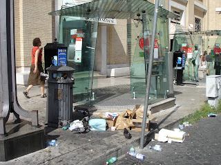 Am fost la Roma. Prima dată. Police a împlinit 25 de ani. Un pic mai mult decât mine. Dar cu ceva mai multe zerouri în cont. Cu ocazia asta ne-a invitat şi pe noi (aka io şi concurenţa, Cătălin de la Playboy) să participăm la festivitate şi să dăm o tură pe la mormanele de pietre antice, să ne băgăm picioarele în Fontana di Trevi şi să îl salutăm din mers pe nea Papa. Oraşul e drăguţ, dar nu m-a dat pe spate. Shoppingul e pe sistemul de mers la pomul lăudat. Da, ştiu, sunt eu al dracului de pretenţioasă, dar nu găseai chestii prea mişto pe faimoasa Via del Corso. Că pe străduţele adiacente, ticsite de magazine de casă, nu am vrut să-mi fac sânge rău intrând. Cald. Mulţi turişti. Şi mai mulţi turişti. Te călcai în picioare. Cozi infernale pe la tot ce se putea vizita. Iar mulţi turişti. Mizerie. Evident, produsă de cei mult prea mulţi turişti. Mi-au plăcut cele foarte multe cişmele de unde puteai să-ţi iei apă potabilă gratis. Mi-au mai plăcut blocurile populiste care prin cartiere gen Militari, să zicem, arătau într-un mare fel. Restul, în imagini. Multe că doar o moştenesc pe mama.