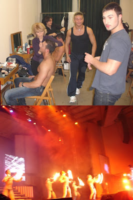 Flamingo Boys au sărbatorit 10 ani de existenţă cu un spectacol de zile mari dedicat femeilor, evident (!), la Sala Palatului, pe 1 martie. Prietenii Ramona şi Adi m-au invitat şi pe mine la show şi la un backstage fun cu băieţii. Nu mai sunt stripperii ce-au fost, dar tot a fost drăguţ spectacolul. Ca de obicei, Cristi Ursu (sus, mijloc) şi Antonio (jos, stânga) au fost vedetele spectacolului, alături de nelipsitul Păsat. Mai nou, trupa s-a ales cu încă un dansator desăvârşit (jos, dreapta), habar nu am cum îl cheamă, dar încă unul-două showri şi îi reţin şi lui numele. :D