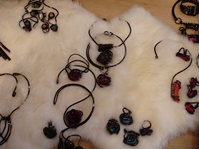 Later edit: se pare că poza din dreapta nu ilustrează tot bijuteriile lui Alexandru Lupu, dar eu aşa am considerat pentru că la momentul când am făcut poza nu era nimeni altcineva la stand, bijuteriile erau pe exact aceeaşi masă şi nu erau nici alte cărţi de vizită. Deci poza respectivă rămâne în pom, cu autor necunoscut.