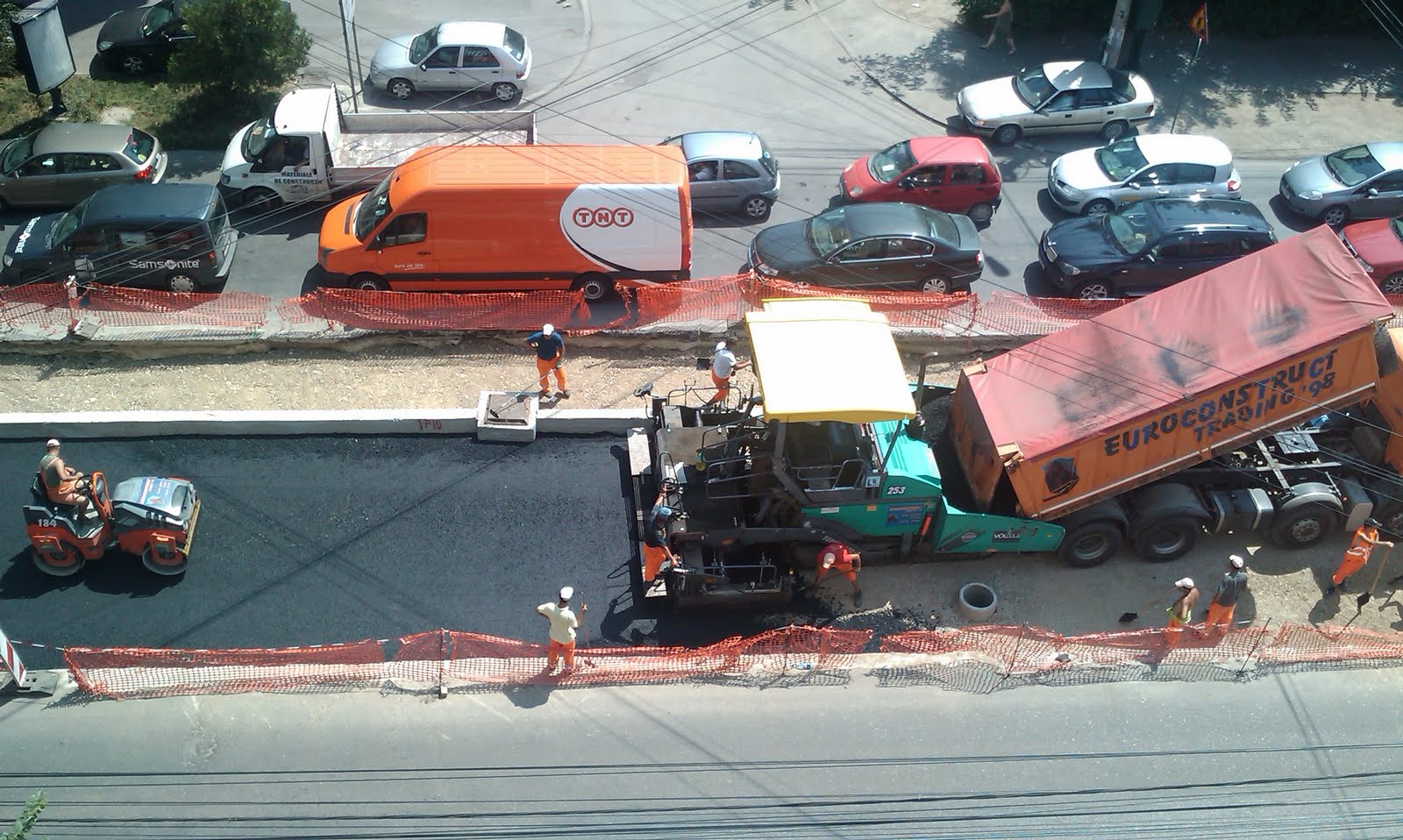 Ce se întâmplă în centrul Capitalei în cea mai toridă zi a celui mai torid an (după cum urlă toate buletinele informative)? Se toarnă asfalt… Noaptea e linişte şi pace pe Buzeşti. Ziua, însă, se lucrează la carosabil. Şi asta probabil pentru că noaptea nu e prea multă lume care să-i vadă că muncesc, cum se sacrifică ei, sărăcuţii… Ce mai contează că de fapt rezultatul e ăla important, nu să vadă dom’ director că ei pun umărul la întinsul asfaltului.