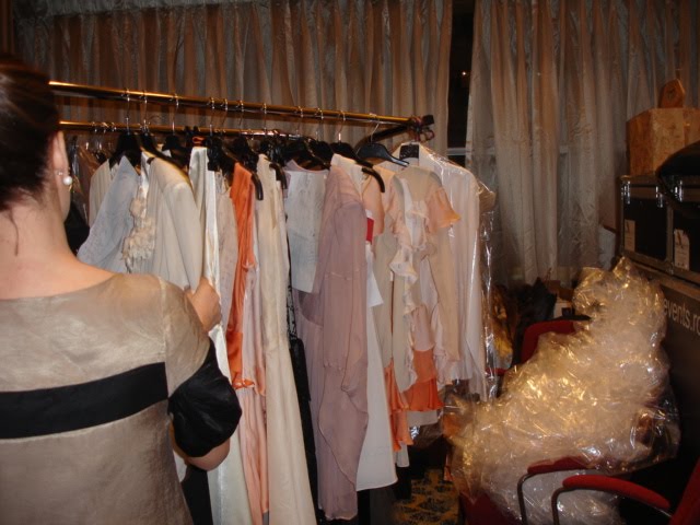 Luni seară, însă, prezentarea colecţiei Mihaela Drafta am văzut-o din culise şi de pe podium. Designerul pe care l-am cunoscut de curând, când am fost la probe, a ales să îşi ţină defilarea cu femei obişnuite, nu cu manechine, iar eu am fost una din ele. Sunt încântată că am făcut o alegere bună din faza de schiţe şi m-am făcut cu cea mai frumoasă rochie din prezentare. Pozele de mai jos sunt din culise, făcute de mine, iar pe cea cu mine din deschidere am găsit-o pe facebook.