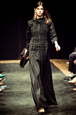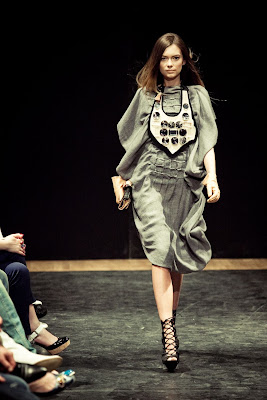 După cum vă ziceam ieri, luni seară am fost la o prezentare de modă a trei designeri mai mult sau mai puţin cunoscuţi. A fost deschiderea unei serii de evenimente sub egida Opera Fashion, prezentări de modă ce se ţin la Opera Română. Cadrul a fost destul de potrivit pentru aşa ceva. Ce m-a surprins, însă, a fost lumea prezentă, care, cu mici excepţii, nu reprezintă publicul obişnuit la astfel de manifestări.Au fost trei prezentări: prima a fost Carmen Secăreanu, cu o colecţie în note caracteristice; a doua, o surpriză pentru mine, a fost colecţia Cristhelen B (ceea ce vedeţi în poze), adică Cristina Bâtlan, designerul marochinăriei Musette şi al liniei de lux Cristhelen B; iar a treia colecţie a fost a lui Iris Şerban. Spun că a fost o surpriză pentru că deşi citisem că a făcut senzaţie cu colecţia sa de haine la Cluj Fashion Week, îmi ieşise din minte, şi pentru că mi-a plăcut foarte mult linia definitorie a pieselor.